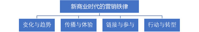 在此前提下,我们根据市场发展趋势,把握互联网时代发展原则,提出新商业环境下的营销转型思路,旨在指导传统企业通过对互联网时代特征和规律的把握,来完成自身的营销变革。在时代的面前,即使是大公司也往往无能为力,没有人敢在这个时代说我的产品是万能的,我的营销模式是万能的,在时代的面前,基业长青的公司往往都是那些勇于学习并且勇于突破的公司,无论是个人还是企业,如果不能够试着学习和接受环境的变化,等待他的终将是淘汰。